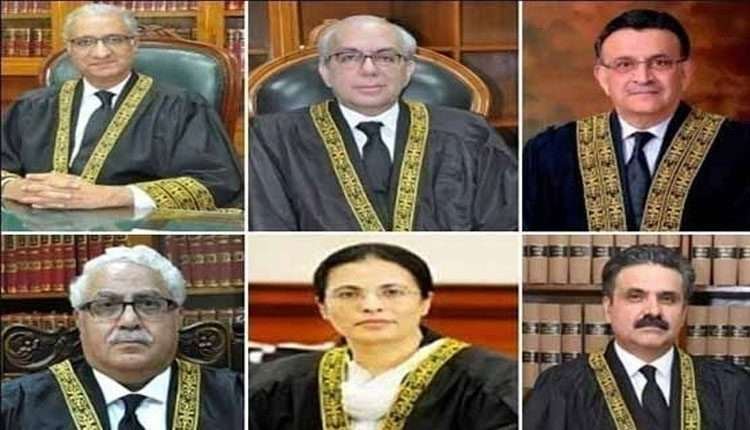 چیف جسٹس آف پاکستان عمر عطا بندیال کی سربراہی میں جسٹس اعجاز الاحسن، جسٹس منیب اختر، جسٹس یحییٰ آفریدی، جسٹس سید مظاہر علی اکبر نقوی اور جسٹس عائشہ اے ملک پر مشتمل 6 رکنی لارجر بنچ نے درخواستوں پر سماعت کی۔