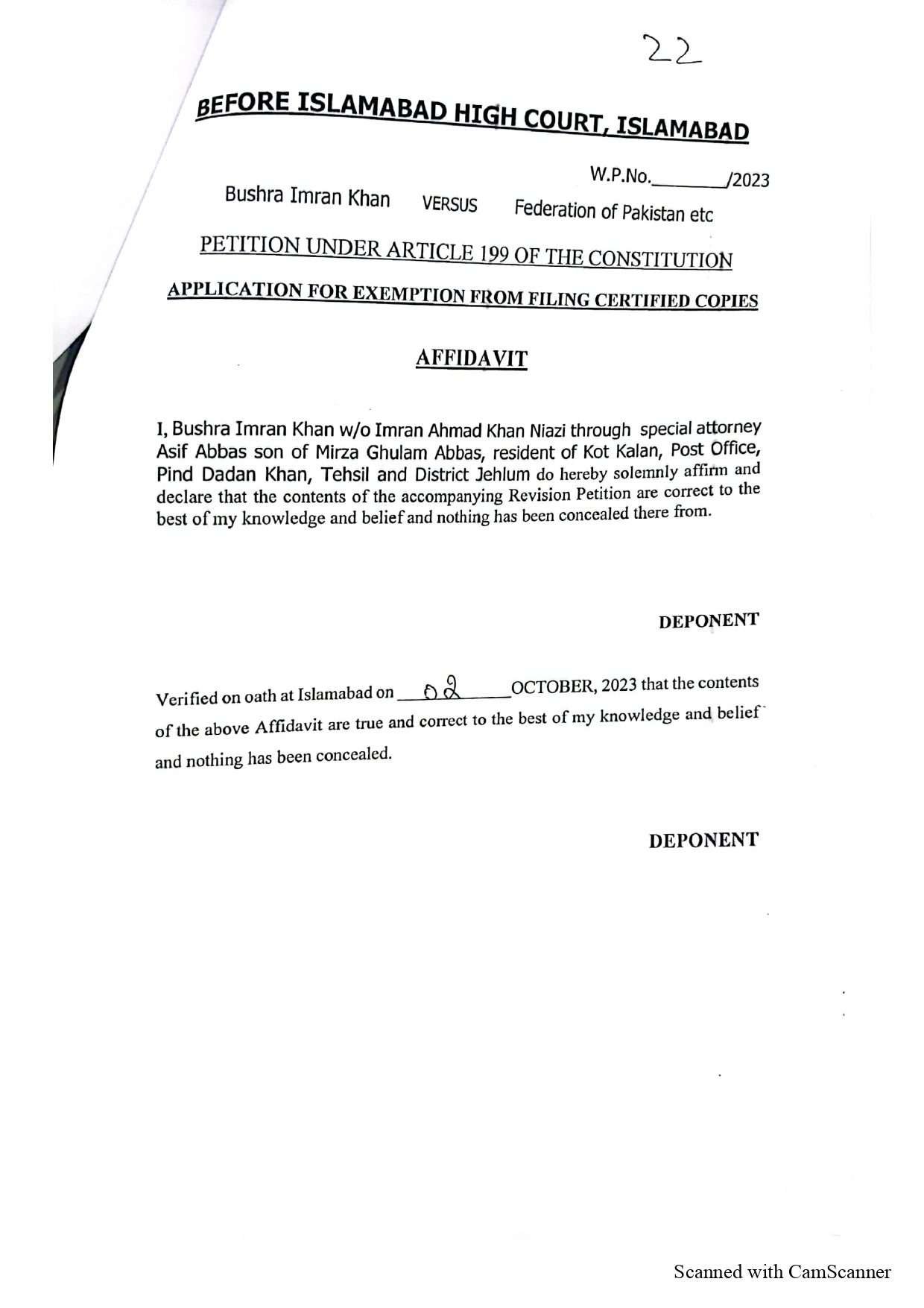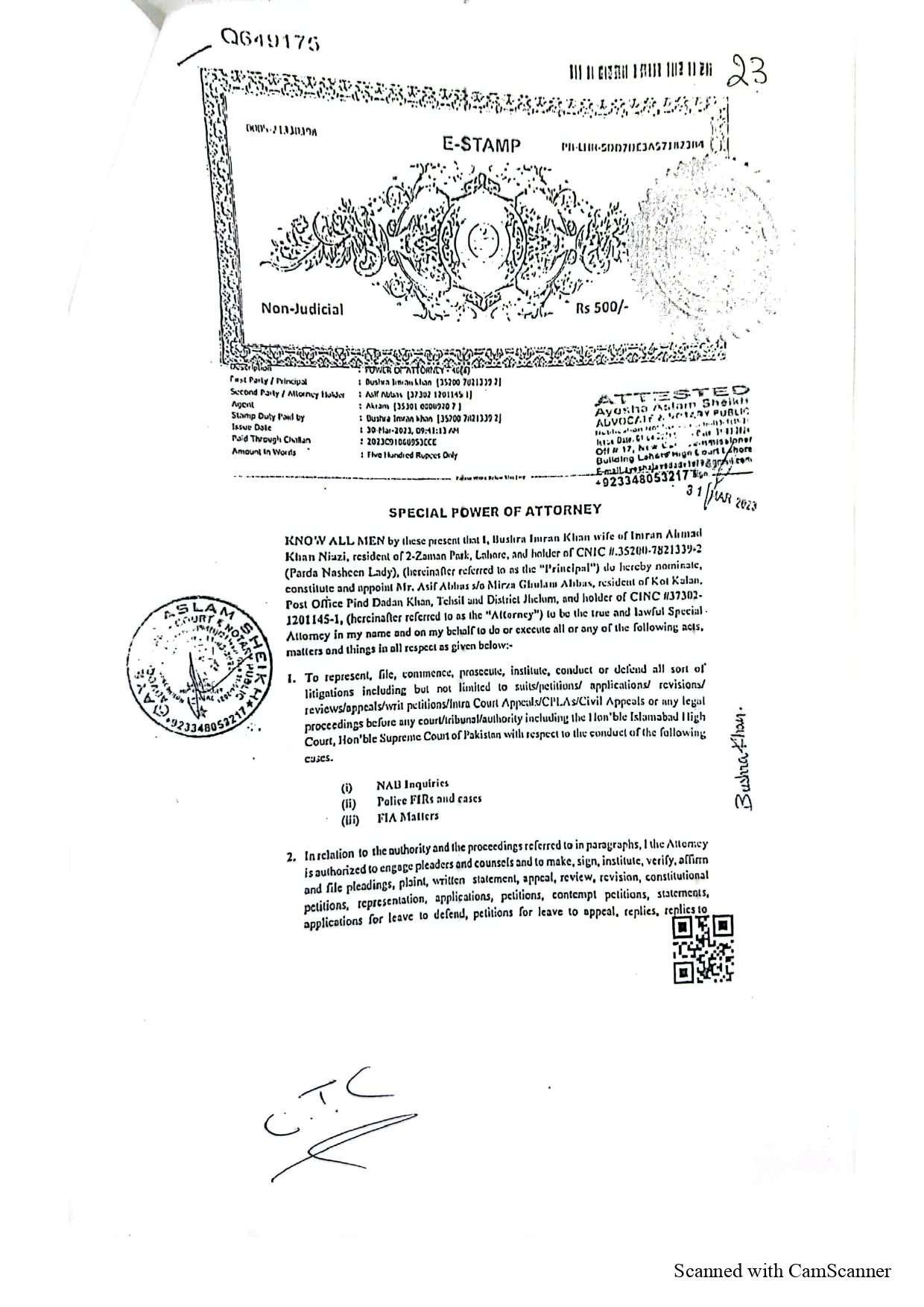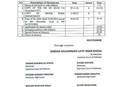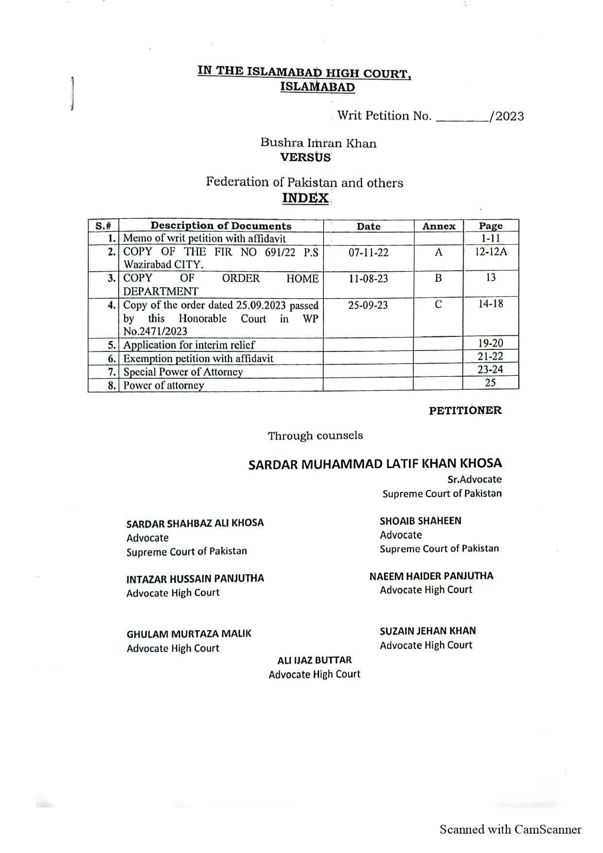 درخواست میں عمران خان پر ہونے والے حملے کی ایف آئی آر کی نقل کے علاوہ،اسلام آباد ہائی کورٹ کے 25ستمبر کے فیصلے اور 11اگست کے حکومتی پنجاب کی طرف سے جاری کردہ نوٹی فکیشن کی نقل بھی منسلک کی گئی ہے۔