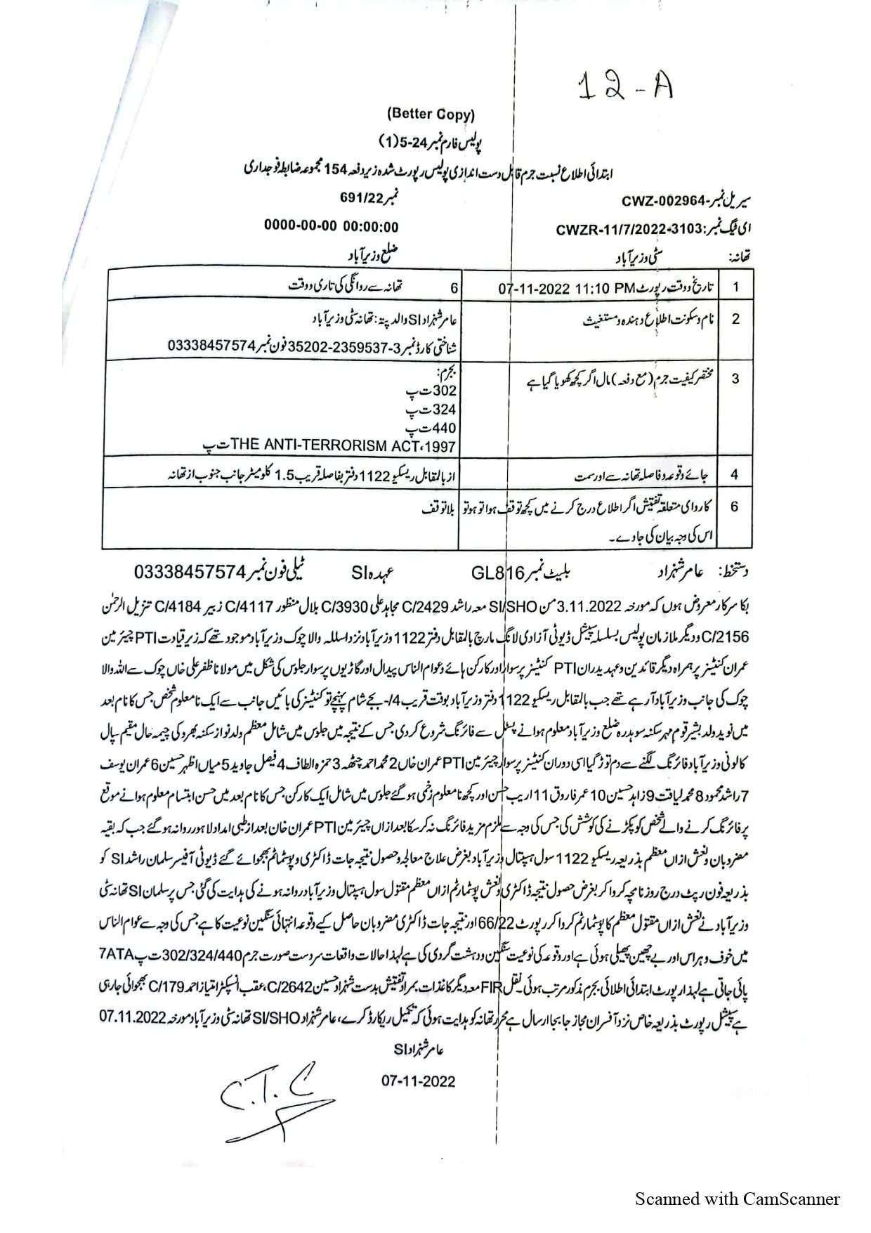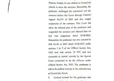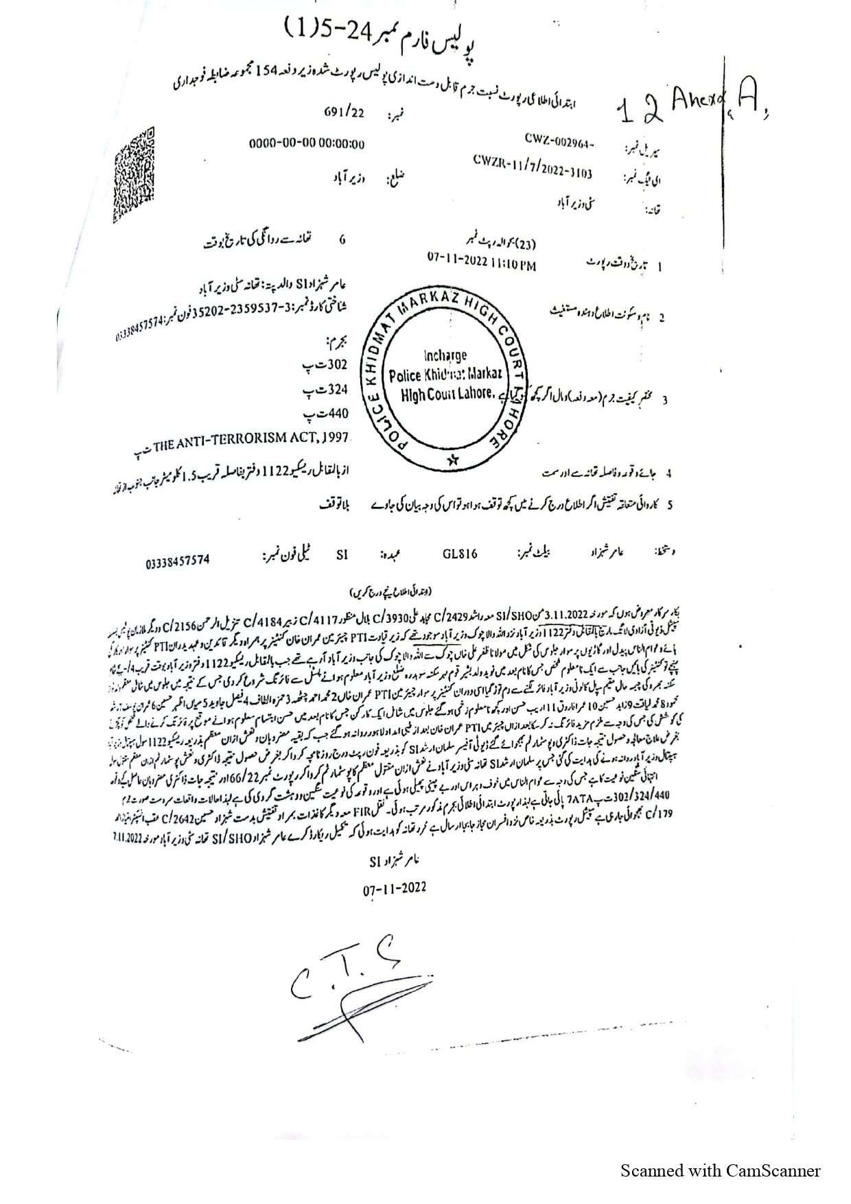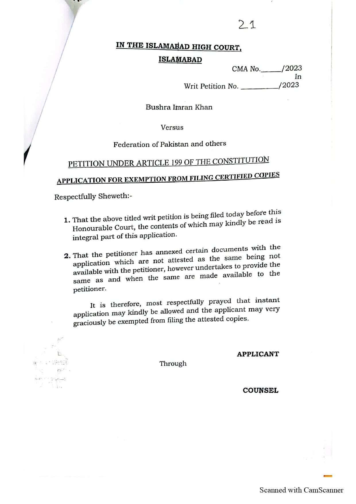 درخواست میں عمران خان پر ہونے والے حملے کی ایف آئی آر کی نقل کے علاوہ،اسلام آباد ہائی کورٹ کے 25ستمبر کے فیصلے اور 11اگست کے حکومتی پنجاب کی طرف سے جاری کردہ نوٹی فکیشن کی نقل بھی منسلک کی گئی ہے۔