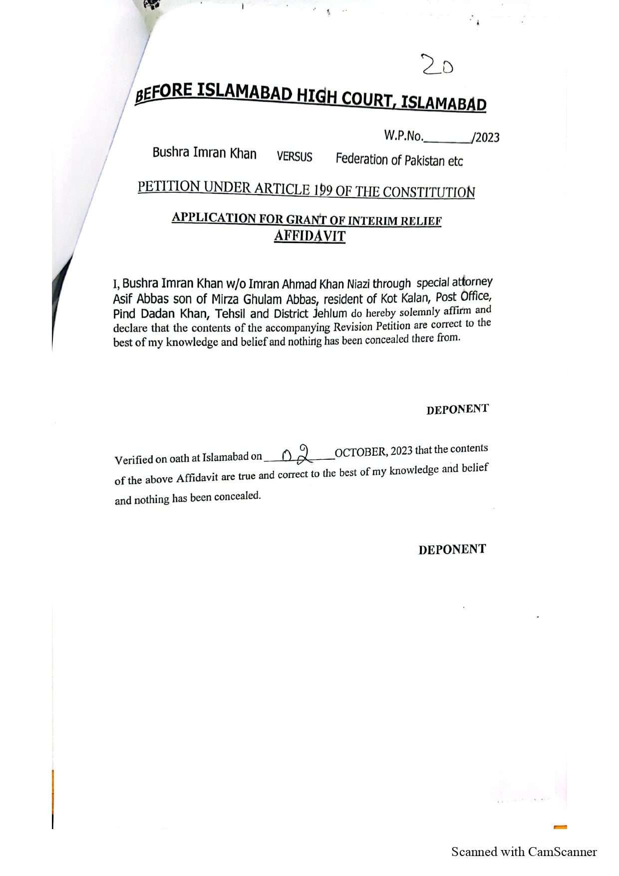 بشریٰ بی بی کی درخواست پر پہلی سماعت 5 اکتوبر کو ہوئی جس میں اسلام آباد ہائیکورٹ نے چیئرمین پی ٹی آئی کو جیل میں سکیورٹی اور تحفظ فراہم کرنے سے متعلق کیس میں وزارت داخلہ اورجیل حکام کو نوٹس جاری کرتے ہوئے آئندہ سماعت تک جواب طلب کرلیا۔
