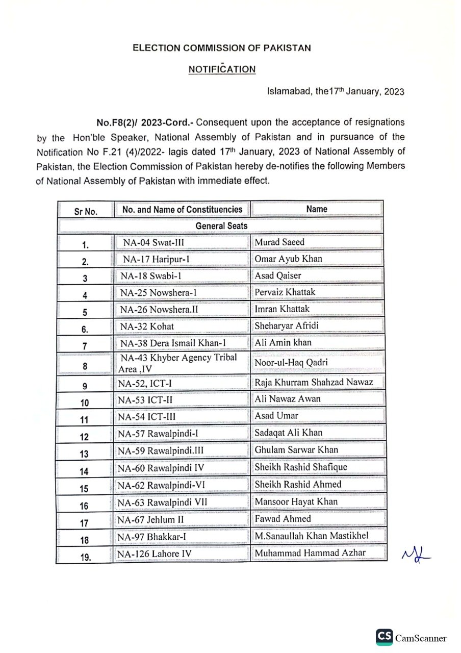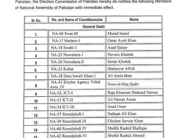 مراد سعید، پرویز خٹک، نور الحق قادری، اسد قیصر، شیخ رشید، شہریار آفریدی، اسد عمر،۔شاہ محمود قریشی کو بھی ڈی نوٹیفائی کردیا.