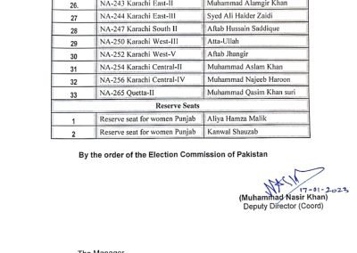 2 مخصوص نشستوں پر ڈی نوٹیفائی ہونے والوں میں عالیہ حمزہ اور کنول شوزب شامل